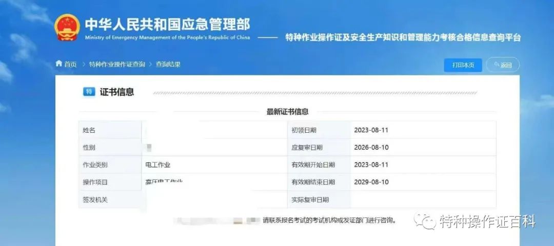 特種作業操作證由當地應急管理局(原安監局)頒發,證書每3年一審,6年一換。證書全國通用,網上統一查詢網址,請認準查詢平臺唯一官方網址“https://cx.mem.gov.cn”。也可通過微信公眾號搜索“國家安全生產考試”查詢。